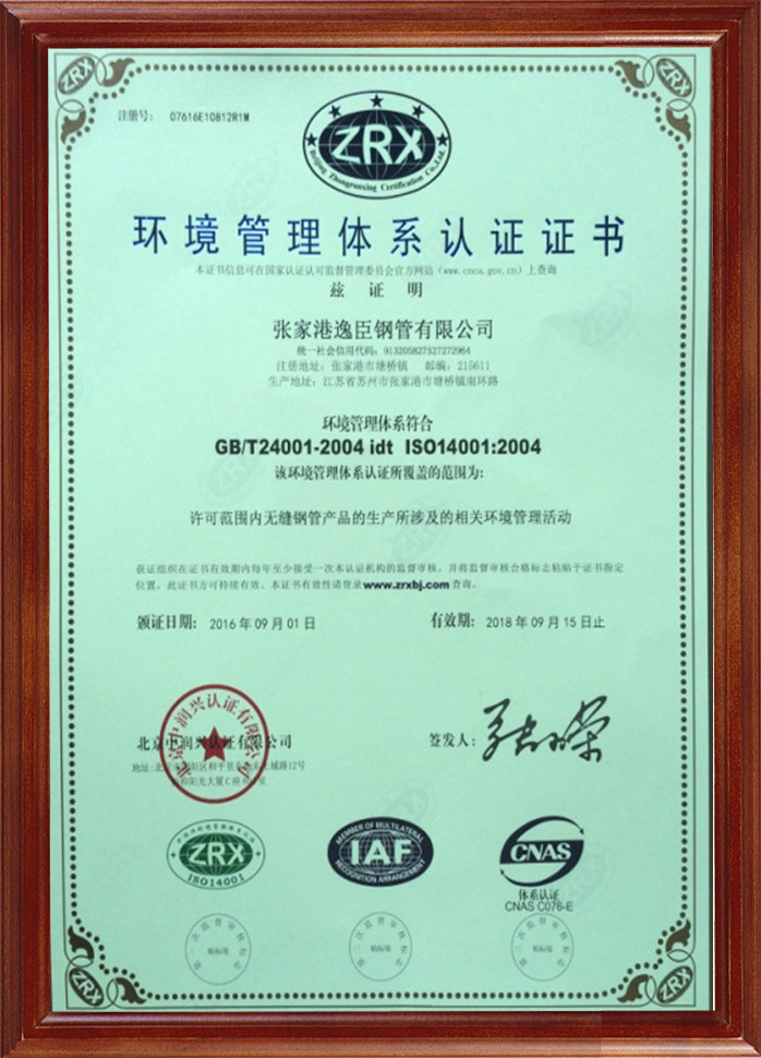 環(huán)境管理體系認(rèn)證證書